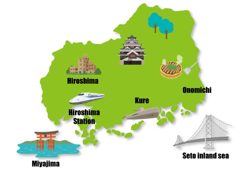 (呉駅で降りて徒歩5分ほどで上記すべての場所に向かえます)