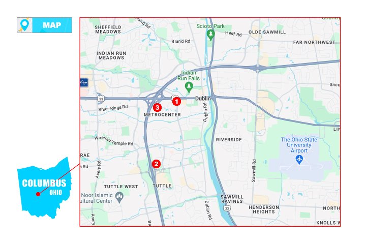 | 1 | Home2 Suites by Hilton Columbus Dublin | 5000 Upper Metro Place, Dublin, OH 43017 | 1King/2Queen | $120~ (*長期滞在 $109~) | ○ | ○ |