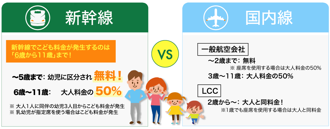 新幹線は 5歳まで無料でご乗車可能! ご家族で移動する場合はこの差は大きい!