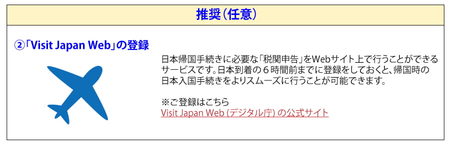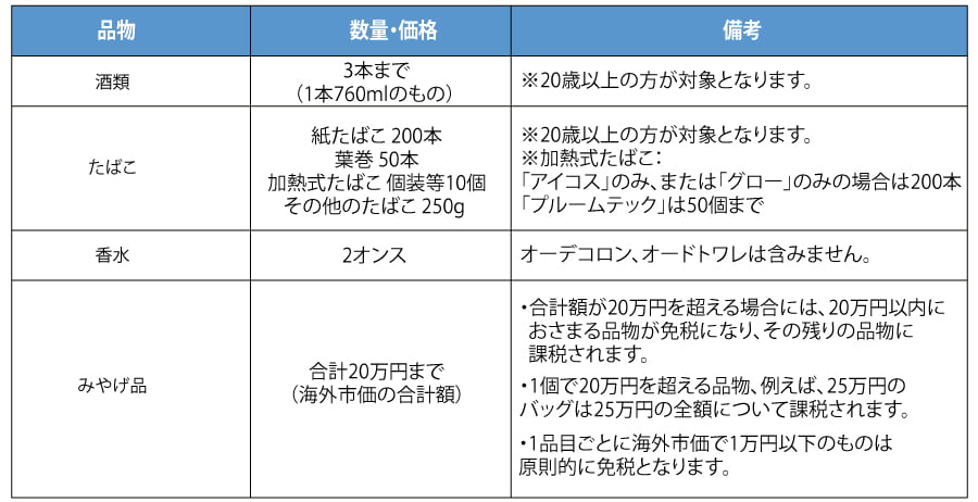 海外旅行者の免税範囲が設けられており、「Visit Japan Web」による電子申告が推奨されています。