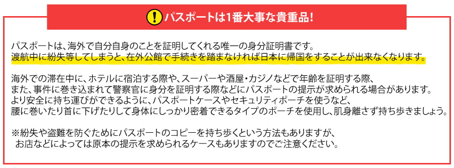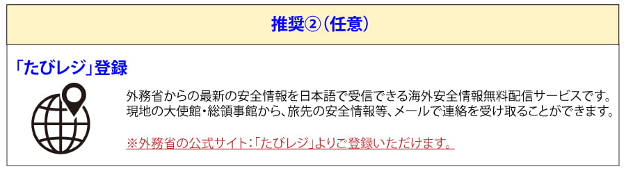 | 渡航後 | - 現地の基本情報 - 電話の掛け方 - 滞在中の緊急時・滞在中のトラブル |